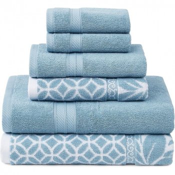 6-Piece Sky Blue 100% Cotton Reversible Jacquard Towel Set – Spa Quality Soft & Absorbent
